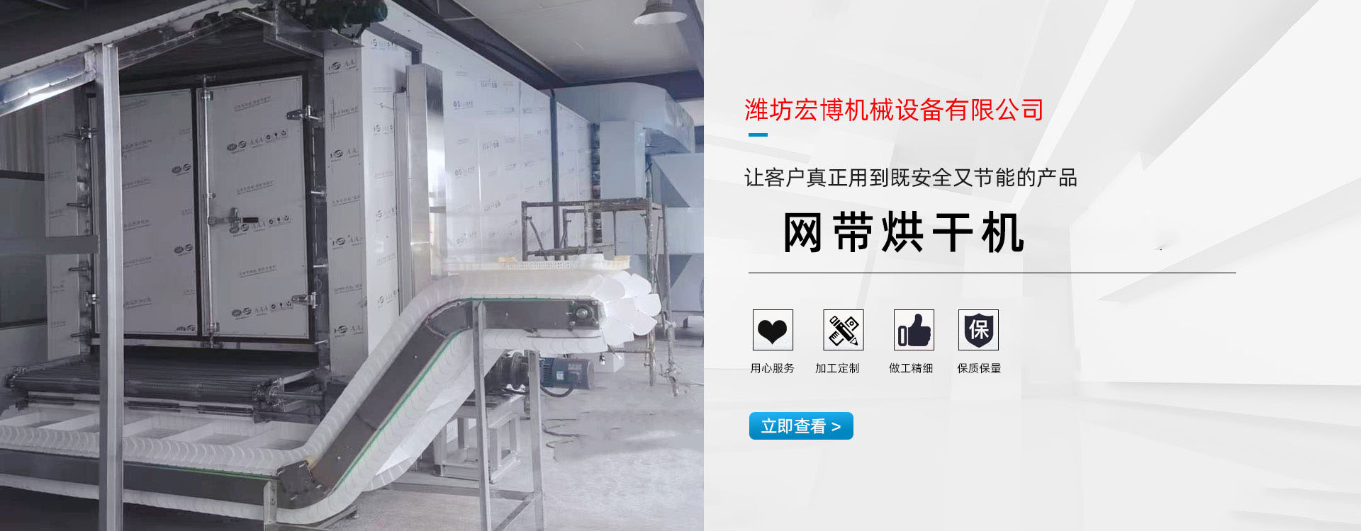 宏博公司主要產(chǎn)品有:網(wǎng)(wǎng)帶烘干機(jī)、食品烘干機(jī)、滾筒烘干機(jī)、隧道窯、烘干箱、燃?xì)鉄犸L(fēng)爐、高大車間供暖設(shè)備、礦用防爆電加熱器等。